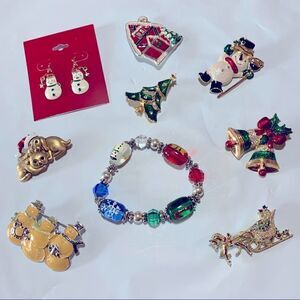 Enamel Christmas Brooches & Earrings Also Murano Glass Bracelet Bundle of 9