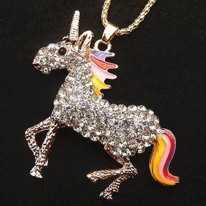 Enamel Crystal Horse/Unicorn Pendant Rainbow