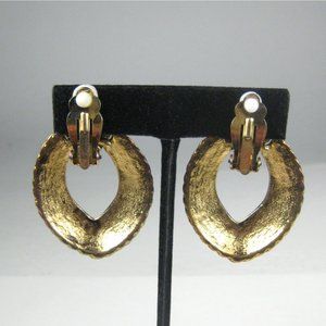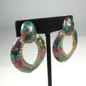 Enamel Dangle Clip On Earrings Goldtone 1980 1990 Vintage 2 inch