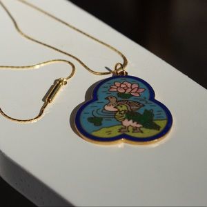 Enamel Duck/Lotus Scene Cloisonné Pendant
