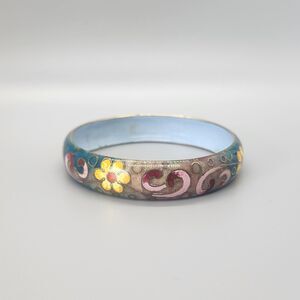 Enamel Floral Metal Bangle Bracelet Cuff Robert Kuo Unmarked Cloisonne Boho VTG