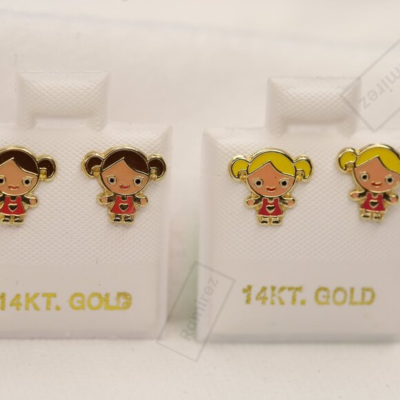 Enamel Girl Stud Earrings For Kids In Solid 14K Gold • Jewelry For Girls.