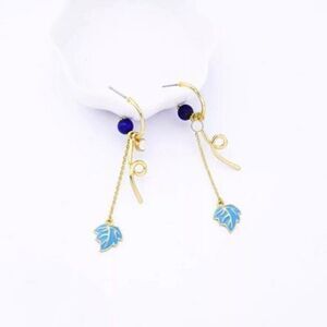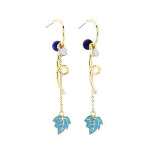Enamel Glaze Natural Stone Leaf Gold Dangle Statement Earrings