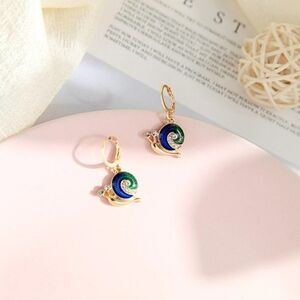 Enamel Glaze Snail White Crystal Leverback Dangle Statement Earrings