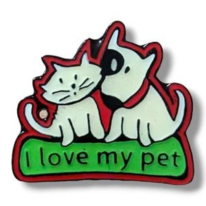 Enamel Hat Lapel Pin I LOVE MY PET Cat & Dog Schering Plough Animal Health