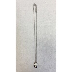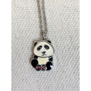 Silver tone metal chain with cute black and white panda pendant- has hearts on his feet - gently worn, no flaws
