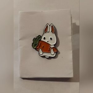 1in by 1in -Bunny holding a carrot- Themed Enamel Metal Pin with rubber backing 🐇