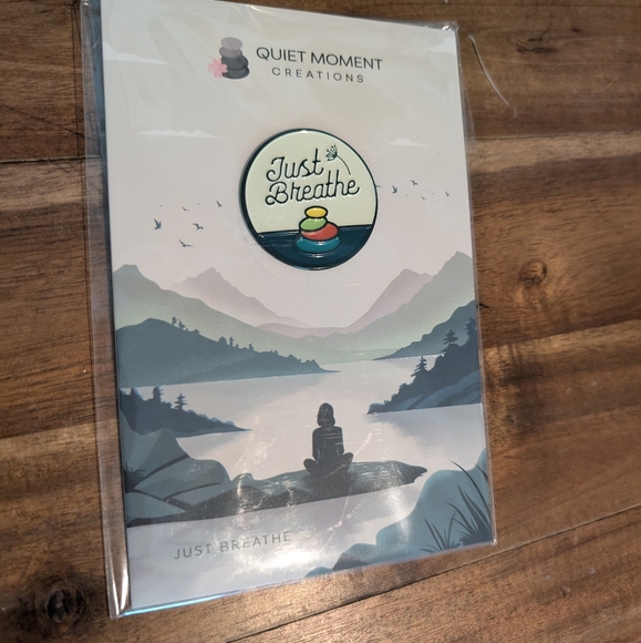 New, unopened. A Just Breathe enamel pin. A lovely affirmation pin to put on your clothes, bags or wherever you feel you need to. So cute