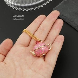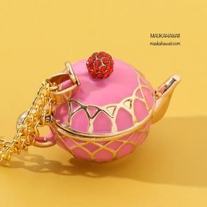 Enamel Pink Teapot Poison Pill Secret Compartment Pendant Necklace