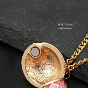 This locket style necklace has hand painted pastel details and a magnetic closure system. It’s precision alloy casting and modern design make it the perfect gift. Also available in BLUE in a separate listing.