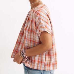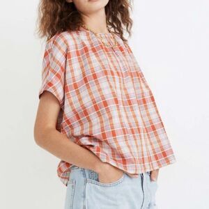Plaid top cut from breezy cotton for a languid, boxy fit.