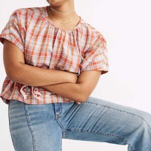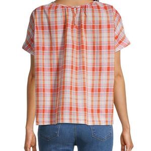 Enamel Red June Hero Plaid Shirred-Neck Short-Sleeve Top