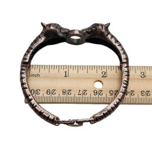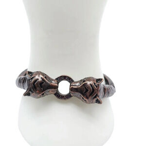 Enamel Rhinestone Lion Tiger Head Bangle Bracelet Brass Tone Vintage