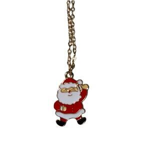 Enamel Santa Claus Goldtone Necklace On 16 Inch Chain