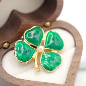 Enamel Shamrock Brooch Lucky 4 Leaf Clover 🍀 🙌🏻✨⏰💭🤝⌛️