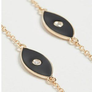 Brilliant diamonds shine from the center of enamel charms bringing unique evil eye inspired look to this Jennifer Zeuner Jewelry bracelet.