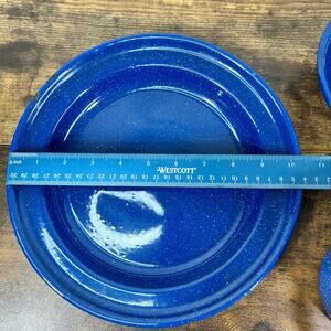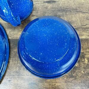 Enamel Ware Blue Speckled Metal Coffee Mug Cup Bowl Plate Cabin Camp Farmhouse