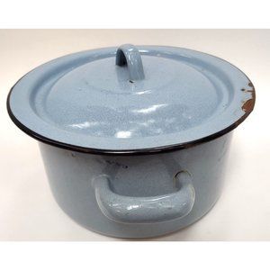 Enamel Ware Pot Light Blue 7 Inches Wide 4 Inches High 7 Inches Diameter Vintage