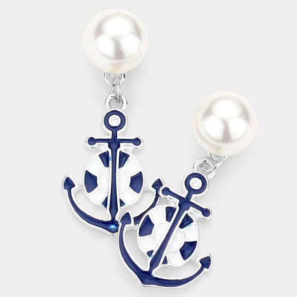 Features: Enamel Lifebuoy Ring Anchor, Faux Pearl Stud
