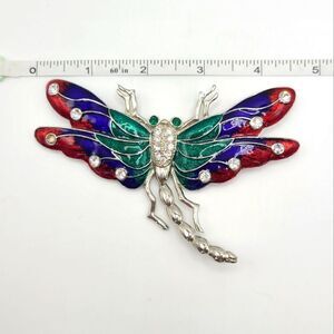 Enamel and Rhinestone Dragonfly Brooch Pin, large