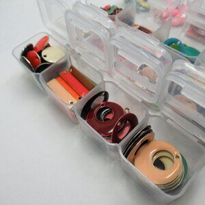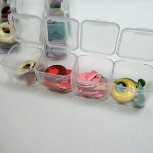 This listing is for the sorted silver plated edged two sided enamel components and storage box pictured. These are destash old stock beads. This box has over 275 components in it. Most of these are new and have never been used, a few have rings and small spots on them. There are a variety of enamel colors.