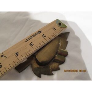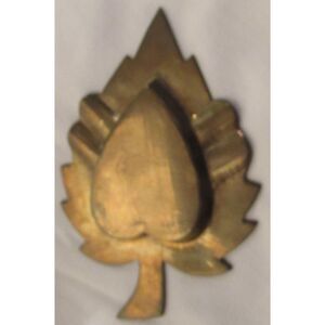Enamel on copper trinket dish ashtray leaf shaped w/ heart inside green vintage