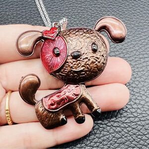 Enamel Love Heart Puppy Dog Animal Chain Necklace/Brooch Pin NWOT