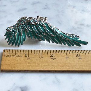 What a fabulous pre-owned statement ring with beautiful whimsical turquoise blue enameled angel wing -- reminds me of the Victoria's Secret® runway show wings!! Long and flowing feathers with sparkles galore. This ring is adjustable and runs the length of your finger. It would be superb pointing to a beautifully manicured finger nail!!!