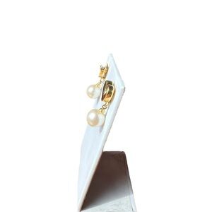 Enameled Black and gold Rhinestone Heart Pearl Drop Post Earrings