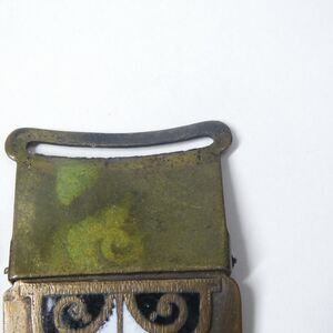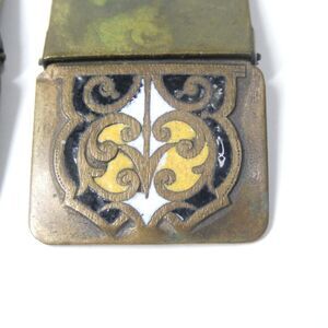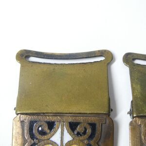 Enameled Brass Buckles Pair Black White Yellow Art Deco Vintage