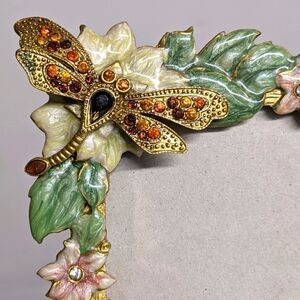 Enameled Floral Photo Frame w/ Dragonfly & Rhinestone Accents