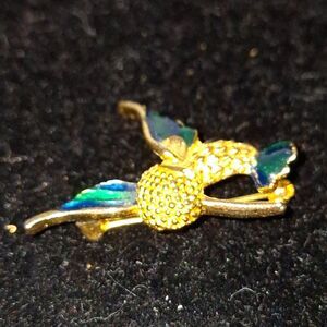 Enameled Vintage Hummingbird Pin Gold Tone Rhinestone Grandmacore Gift