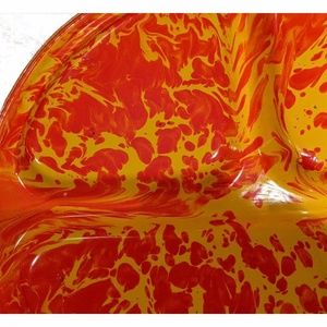 Enamelware Plates 2 Divided End-of-the-Day 12" Dinner Red/Yellow Marble …