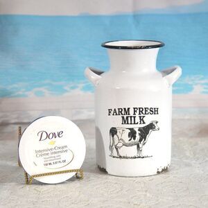 Enamelware Rustic Farm Fresh Milk Can and New Dove Intensive-Cream