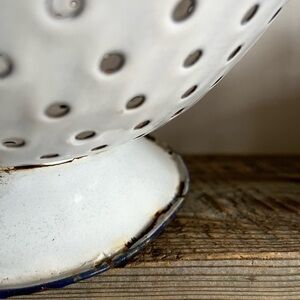 Antique enamel ware colander! Perfect for the plant lover! This is a beautiful vintage piece to add a variety of succulents to. Turn it into a hanging planter or set it on the front porch.