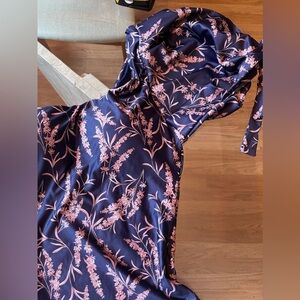 This is a beautiful swimsuit from Encantadore. It is a Colombian brand and think it’s is for Anthropology but I’m not sure! These run about $160. If you want to hit the pool or the beach in style you’ve got to get this swimsuit! It’s more beautiful in person. The fabric feels very soft but strong and it is lined throughout. The color is navy blue with floral designs in pink. It is one shoulder with a puffy sleeve on the left that you can tie with a bow. The original size I believe is large but fits a medium. I added measurements but like any other swimsuit it stretches. But it holds you in. Good quality Lycra. It still new with tags, I never had a chance to wear it. Any questions please feel free to ask!