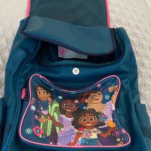 Stylish Disney backpack with blue and pink accents. Comfortable straps and spacious design.