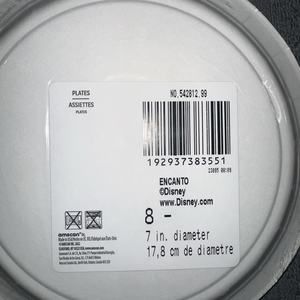 The product is an 8-pack of 7" paper dessert plates featuring characters from the Disney movie Encanto. The plates are designed with a colorful, multi-color theme and are suitable for a child's birthday party. They are manufactured by Amscan in the United States and are part of the TV & Film Characters theme, specifically from the Disney character family. These plates are perfect for serving desserts or snacks at a themed party celebrating the Encanto movie.