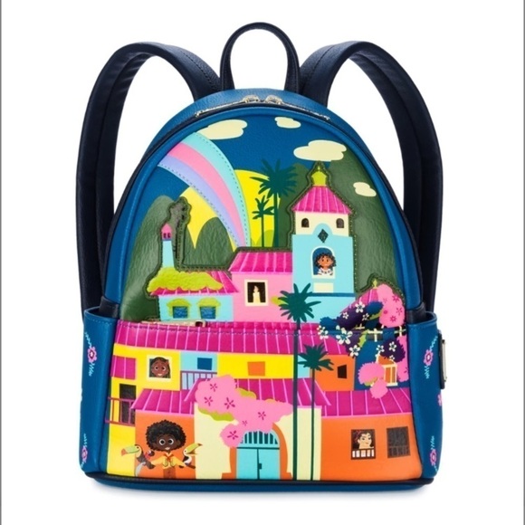 Celebrate the magical Madrigal family with this simulated leather mini backpack inspired by Disney Encanto. An appliqué and screen art of the vivid, fantastical home of the Madrigals fills the front of this handy bag that also features side slip pockets and a front slip pocket.