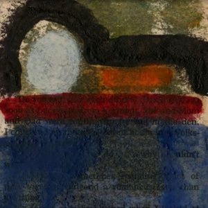 This piece was painted with mixed encaustic (wax with pigment) on a vintage book page.