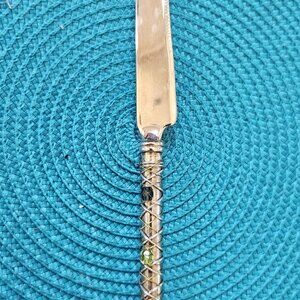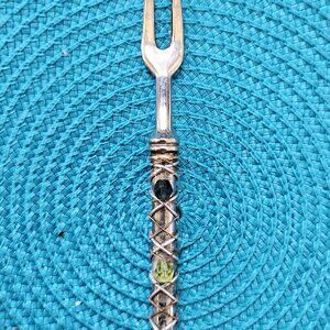 Beautifully charcuterie serving set cheese knife, jam spreader and serving fork, all adorned with matching crystals. Included with a matching single and double shot jigger. All in stainless steel. A wonderful set that would be exceptional in any collection.