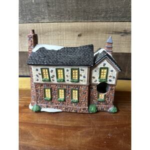 Enchanted Forest Christmas Village Glass Window House Ye Old Cobbler In Box. 8” long and 7” tall. Comes in original packaging with light cord -not light bulb. Looks like the guy has been glued. Please ask any questions and check out my other items. Have a joyful day -jloft