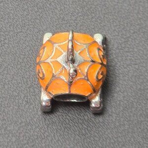 This charming pumpkin carriage charm features a delightful design in silver and orange. It is the perfect addition to any bracelet, adding a touch of whimsy and magic to your Halloween jewelry collection. In the dark, the orange elements glow.