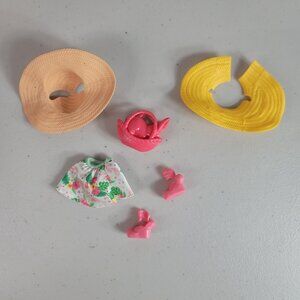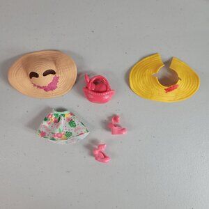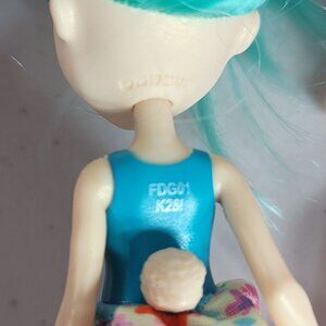 Fluffy Bunny 6" Doll with Pet Bunny Animal Ears Removable Skirt Hat Basket Teal Hair from Garden Magic Set Flower Pot Stand With Flowers 4" Tall