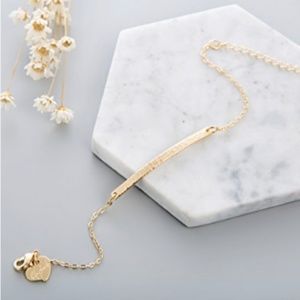 Gold tone dainty bracelet with gold bar.