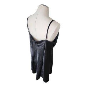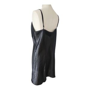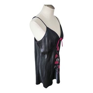 Enchanting Black Satin Nightgown with Pink Floral Embroidery Large Y2K