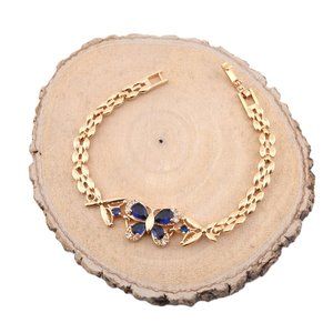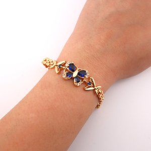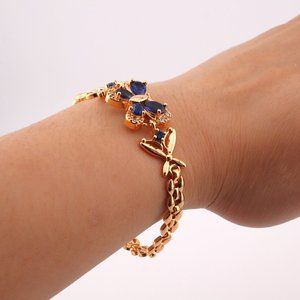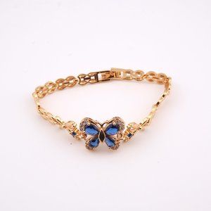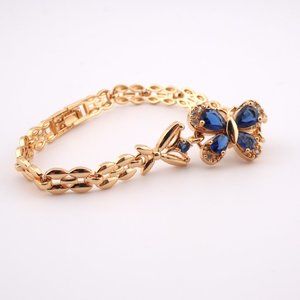 Enchanting Elegance 14kGold Plated Blue Cubic Zirconia Butterfly Linked Bracelet