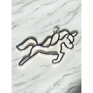 Unleash a touch of magic with this whimsical Unicorn Open Bezel Charm Pendant! This beautifully crafted charm features the iconic silhouette of a prancing unicorn, perfect for adding a dash of fantasy and sparkle to your jewelry creations.