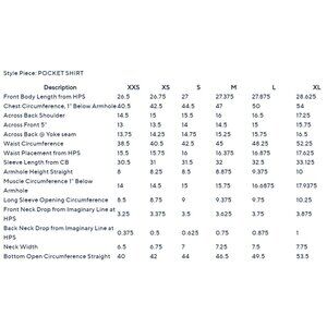Features: collared, button-front, two chest pockets with button-hole closures, box pleat at back yoke, long sleeves