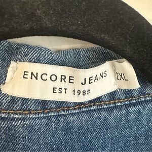 Encore Jeans Women’s Long Sleeve Distressed Raw Hem Denim Jacket Size 2XL GUC